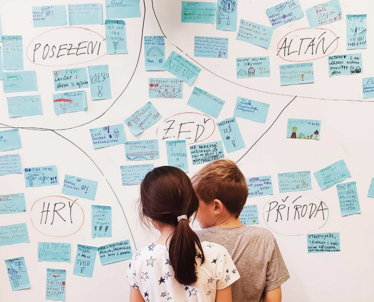 Během podzimu 2023 se formou workshopů a dotazníku žáci a rodiče vyjadřovali k tomu, jak žákovský vstup a prostor u hřiště v současné době užívají, kolik času zde tráví a čím, ale co je ještě důležitější, jakým způsobem by do budoucna trávit chtěli a mohli.