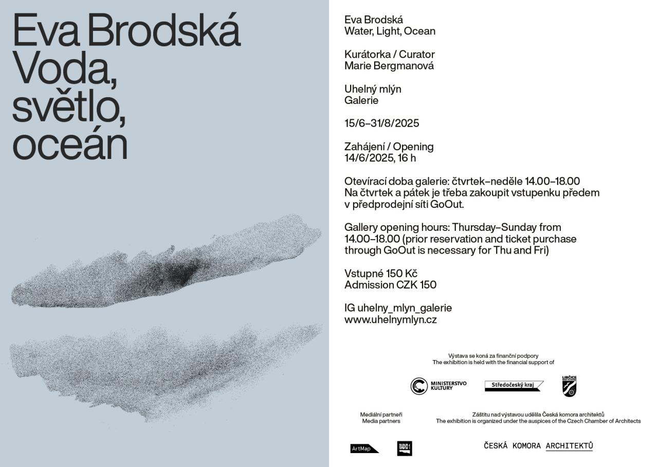 Voda, světlo, oceán Monumentalita Atlantického oceánu propojeného s oblohou a bretaňským pobřežím a klid půdního ateliéru v historickém domě na roudnickém náměstí. To jsou určující body pro velkou část tvorby Evy Brodské, zejména pro řadu autorských tapiserií a akvarelů z posledních tří desetiletí. V takovém rozpětí se pohybuje i výstava koncipovaná pro galerii v Uhelném mlýně. Střídmé výtvarné prostředky a minimalizace barev i kompozice skládají abstrahované záznamy vzpomínek s obecnější platností, jimiž autorka aktivně vstupuje i do kolektivních výstav a mezigeneračních projektů, včetně těch zaměřených na současnou interpretaci ekologických témat.